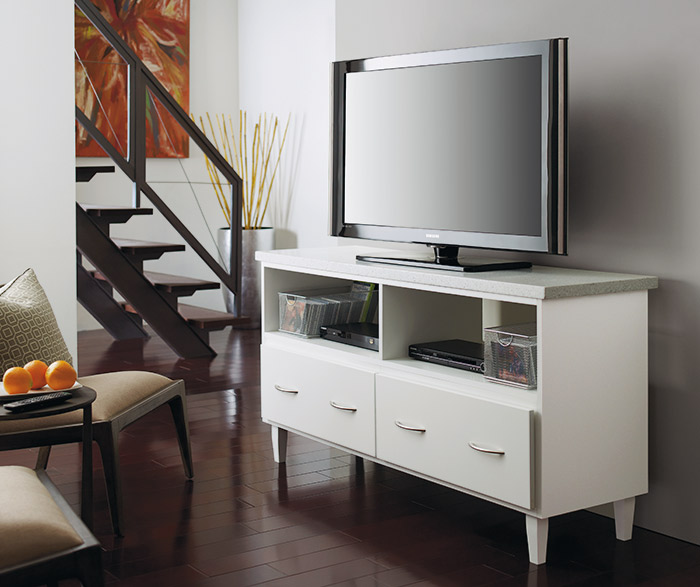Just like their city namesake, these Sedona Alpine White Shaker style kitchen cabinets help to create a calm, spiritual environment. Under cabinet lighting highlights the black countertop against the crisp white finish. Celery green walls tie it all together for a serene space to practice the culinary arts.
